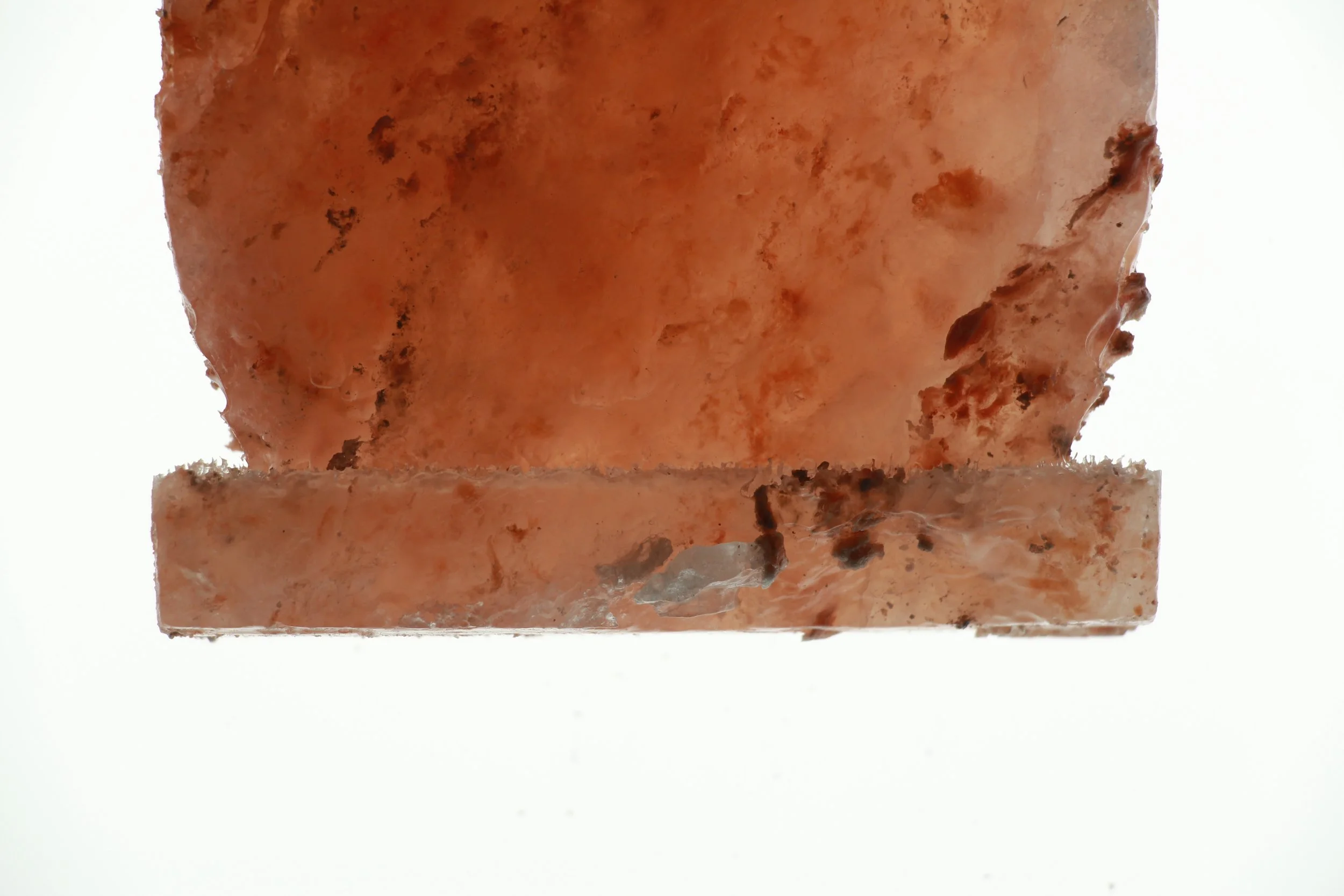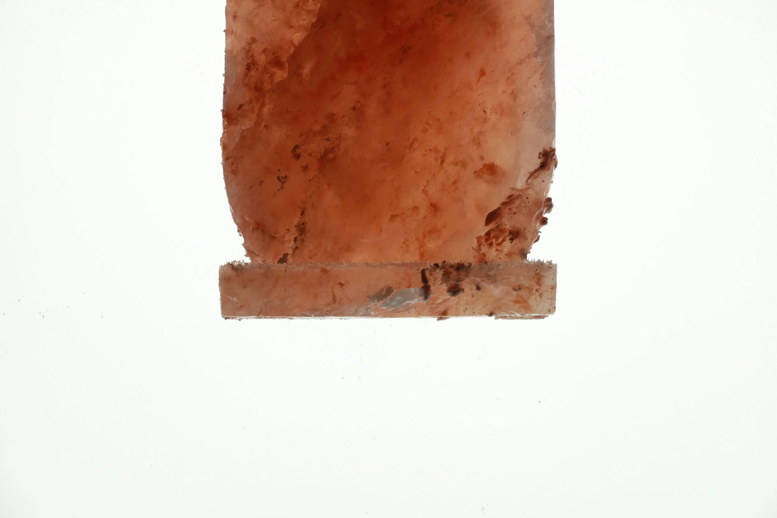 “When I first began Cities of Salinity, I wanted to cast replicas of coastal regions in salt and have them as freestanding translucent sculptures. However, as I began to use water to carve into the salt, it felt more akin to the project. By estimating water salinity in a tank of water, I could control structural changes of the mineral monolith. Water then became a tool for shaping my own coastline. This was a great deal of trial and error - I lost some salt blocks entirely if I didn’t keep track.